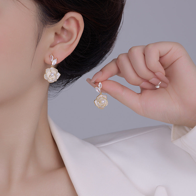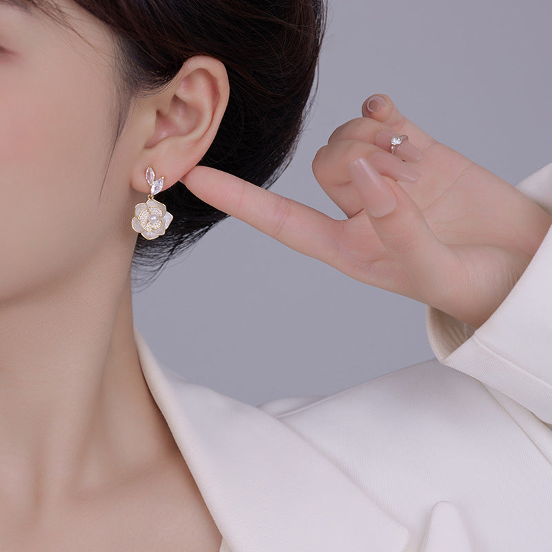Camellia Earrings: Niche, Light Luxury, Micro Flash, Unique Design
